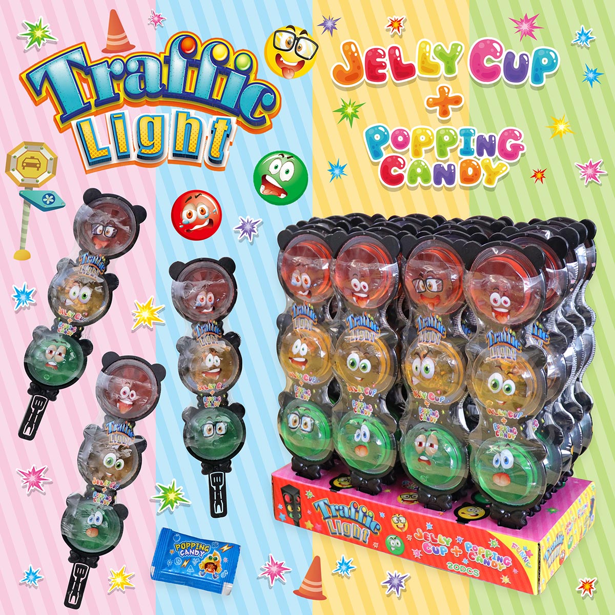 PFS01313 TRAFFIC LIGHT JELLY CUP+POPPING CANDY
